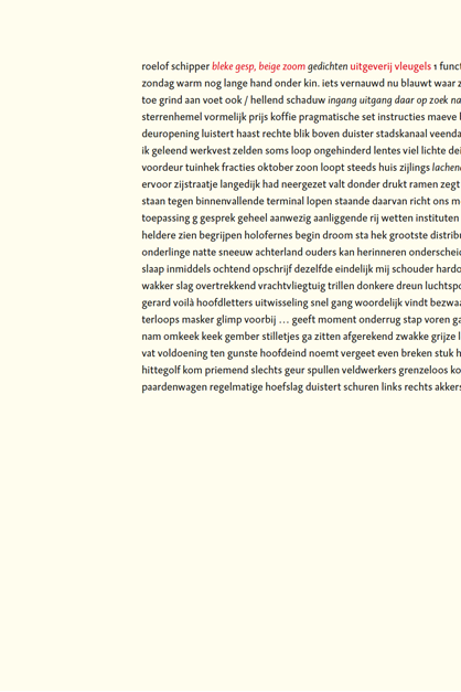 Dit poëziedebuut is er niet zomaar een. Taal, vorm en typografie grijpen ineen tot een genormeerd geheel.